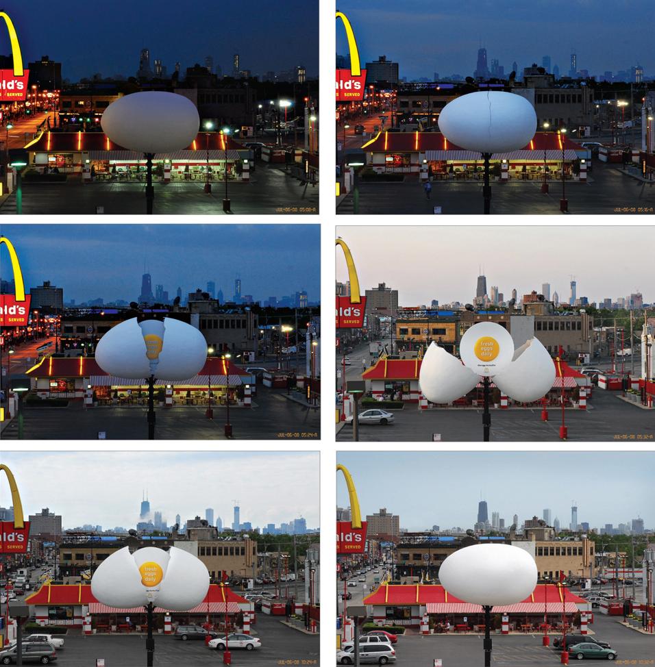 If you can get by my awful egg pun, take a second to read this entry about a giant egg billboard for McDonald’s. It’s a giant egg that mechanically opens during breakfast hours to let people know that McDonald’s is cooking up fresh eggs at that time. Once breakfast is over, the egg closes up, ready to hatch again the next morning.